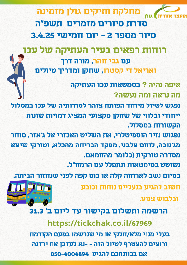 לשבוע הבא הכנו לכם משהו חדש ומקסים סיור בסמטאות עכו העתיקה עם המדריך הנהדר גבי זוהר ובדרך נפגוש דמויות מפתיעות ...